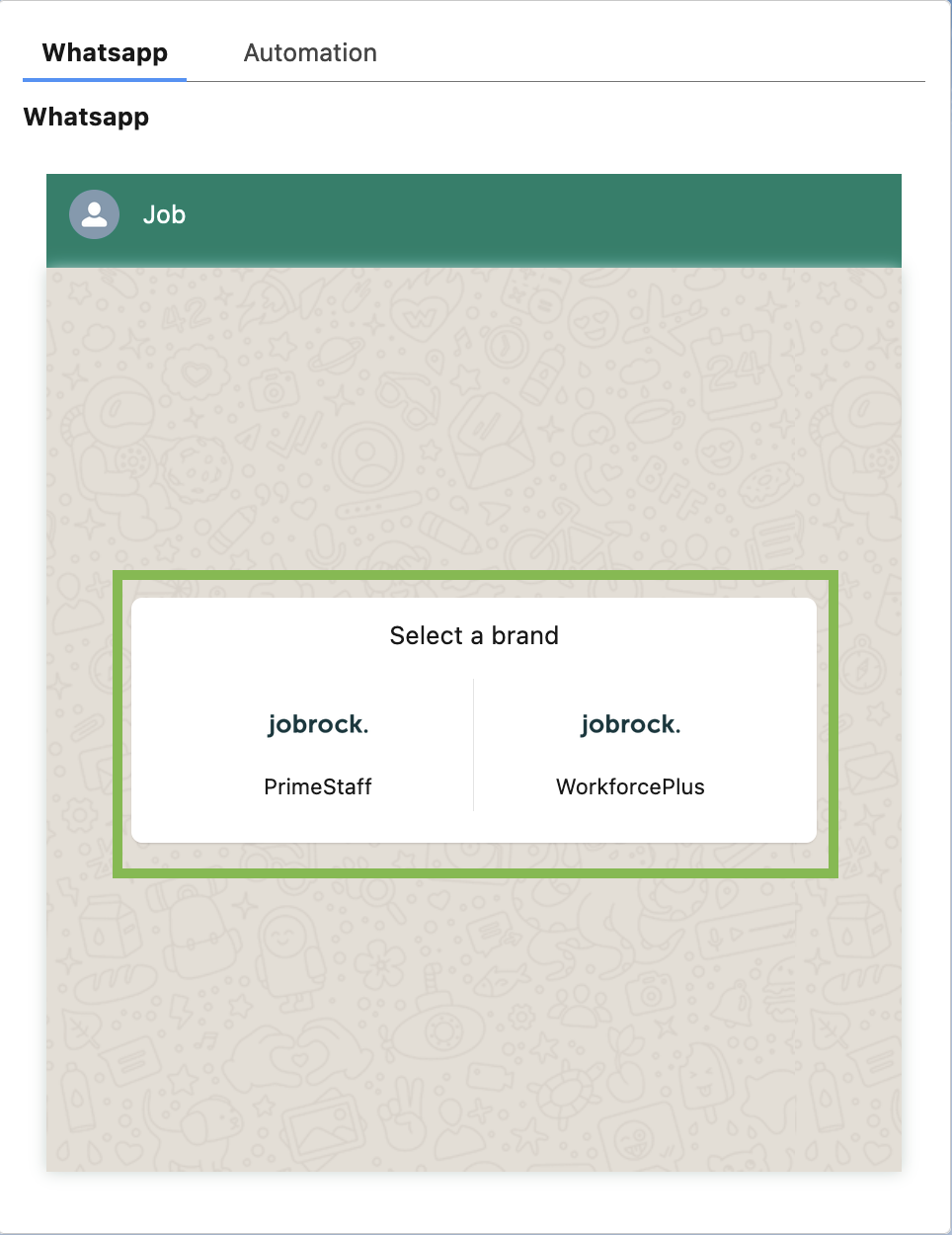 For instance, in the WhatsApp widget, when multi-brand is not configured, the user must manually select the brand before WhatsApp templates are loaded and the corresponding templates become available for selection. This manual action repeats itself every time a user wants to use the WhatsApp widget to communicate with candidates.