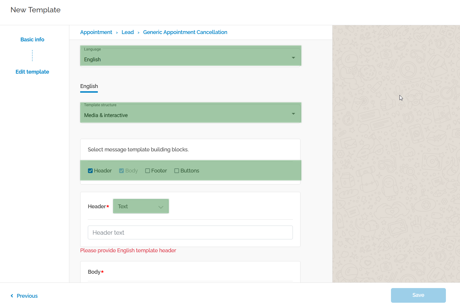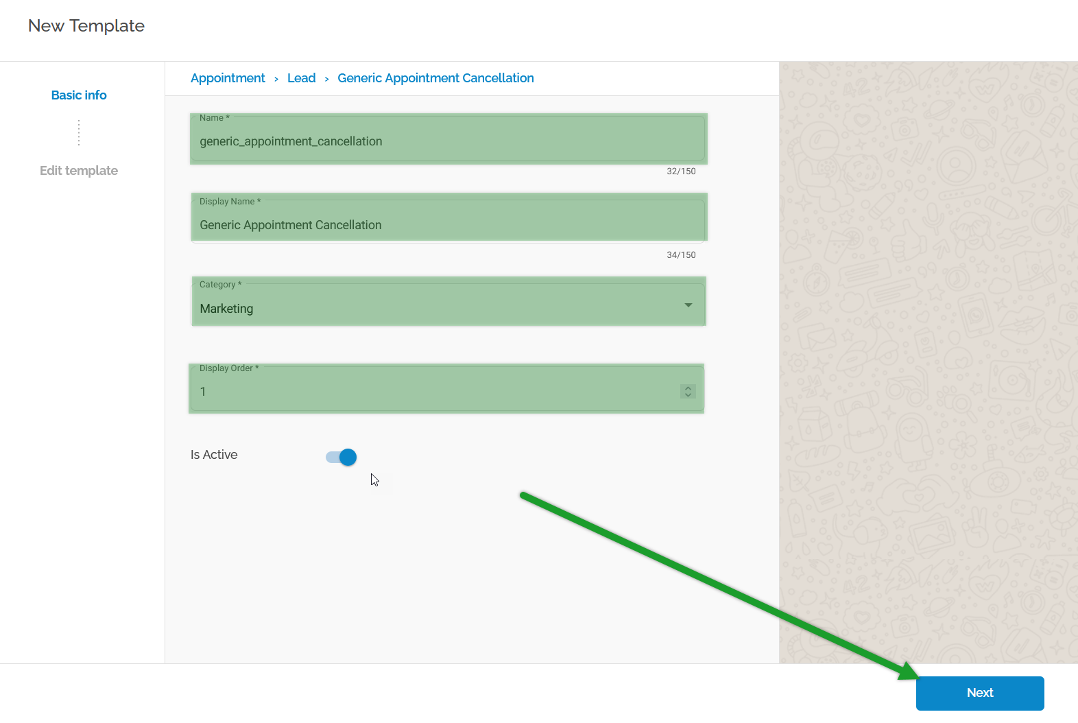 READ MORE: Click here for more information about different template categories and the difference between ''lead'' and ''contact'' templates.