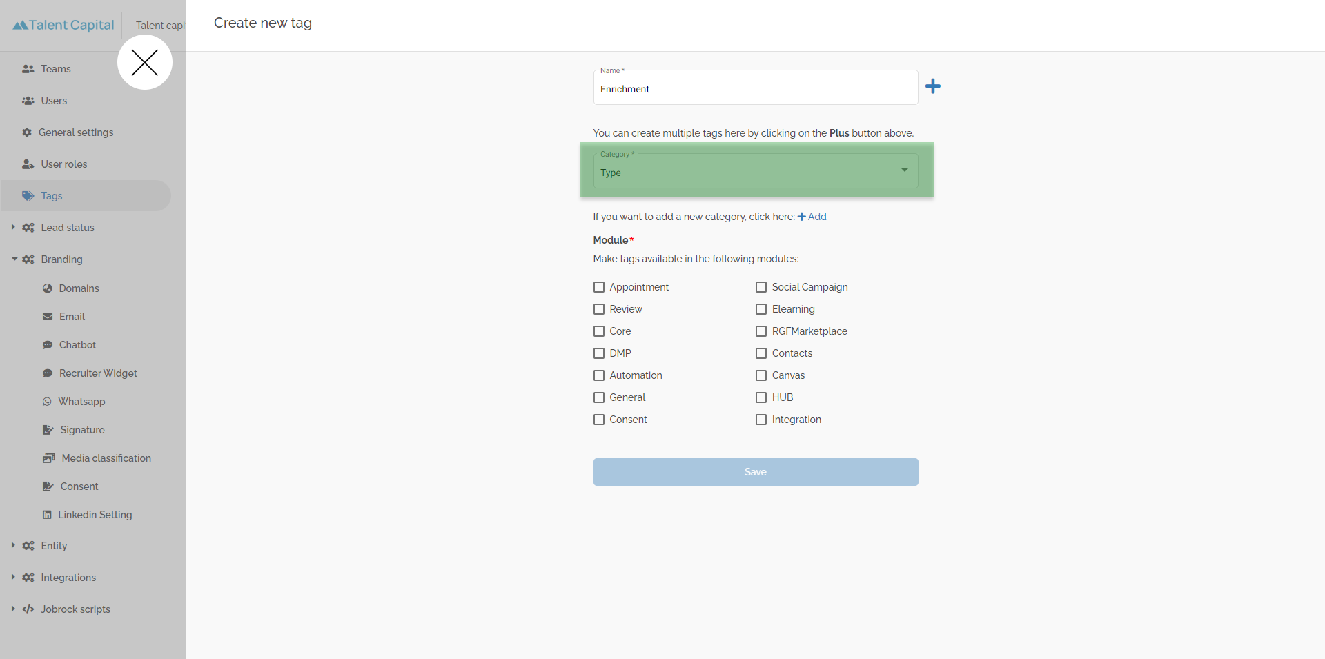 TIP: You can add multiple tags in one go for a specific category. Click the + sign to create a list of tags you want to create in one category.