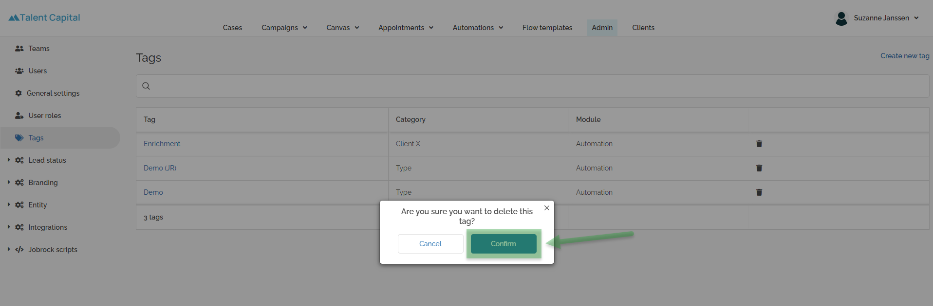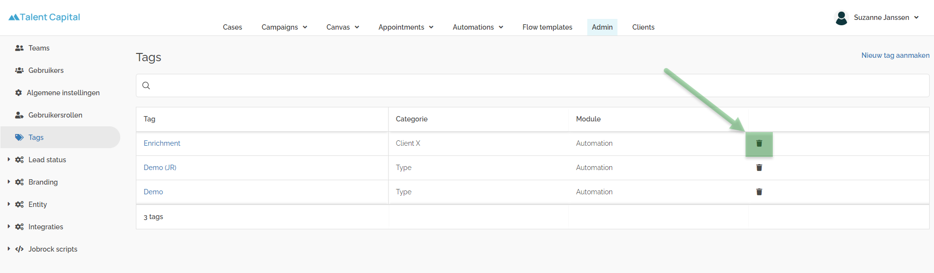 Tags can be useful in Jobrock to easily filter or find created content in Jobrock (like appointment types, automations or canvas pages). This article explains how to remove a tag from Jobrock.