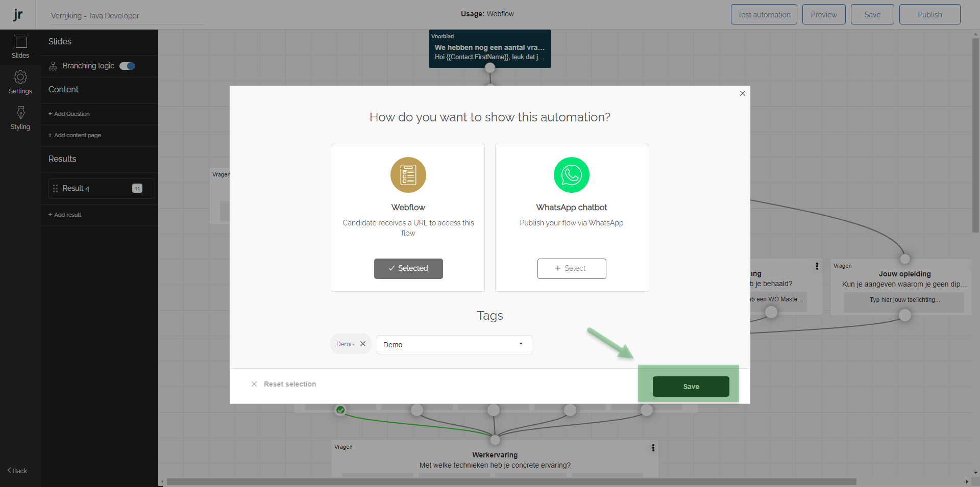 Select the tag(s) from the drop-down list. NOTE: Does the tag you want to use not exist, please contact your Jobrock admin.