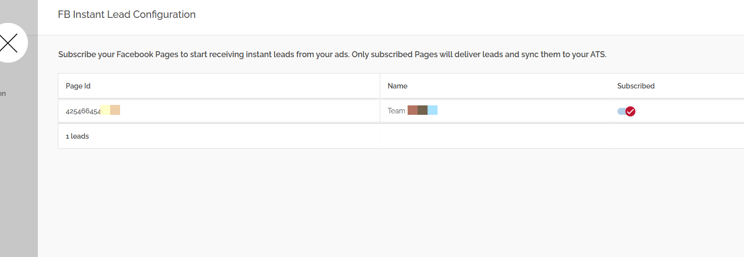 - A page will open with a list of pages which are available for the added Facebook user. Subscribe the page from which you would like to receive the Meta Instant leads.