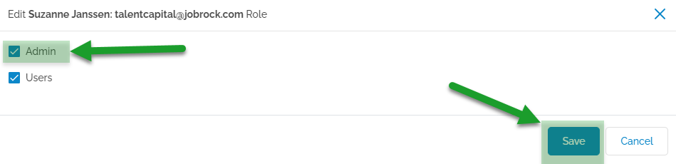 Jobrock permissions are given to users by using roles. By default Jobrock offers 2 roles (Admin and Users). A new user will always have the "Users" role assigned by default. This article will explain how you can give a Jobrock user additional admin rights.
