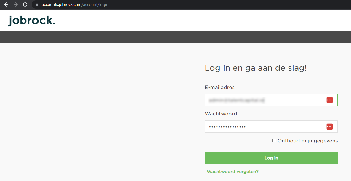 Go to accounts.jobrock.com and log in with the admin user, received from Jobrock.