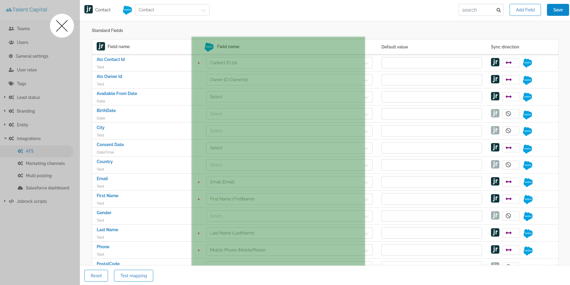 To ensure that the contact object is synchronized correctly between Salesforce and Jobrock the mapping needs to be tested. Follow the steps below to verify and validate the mapping: