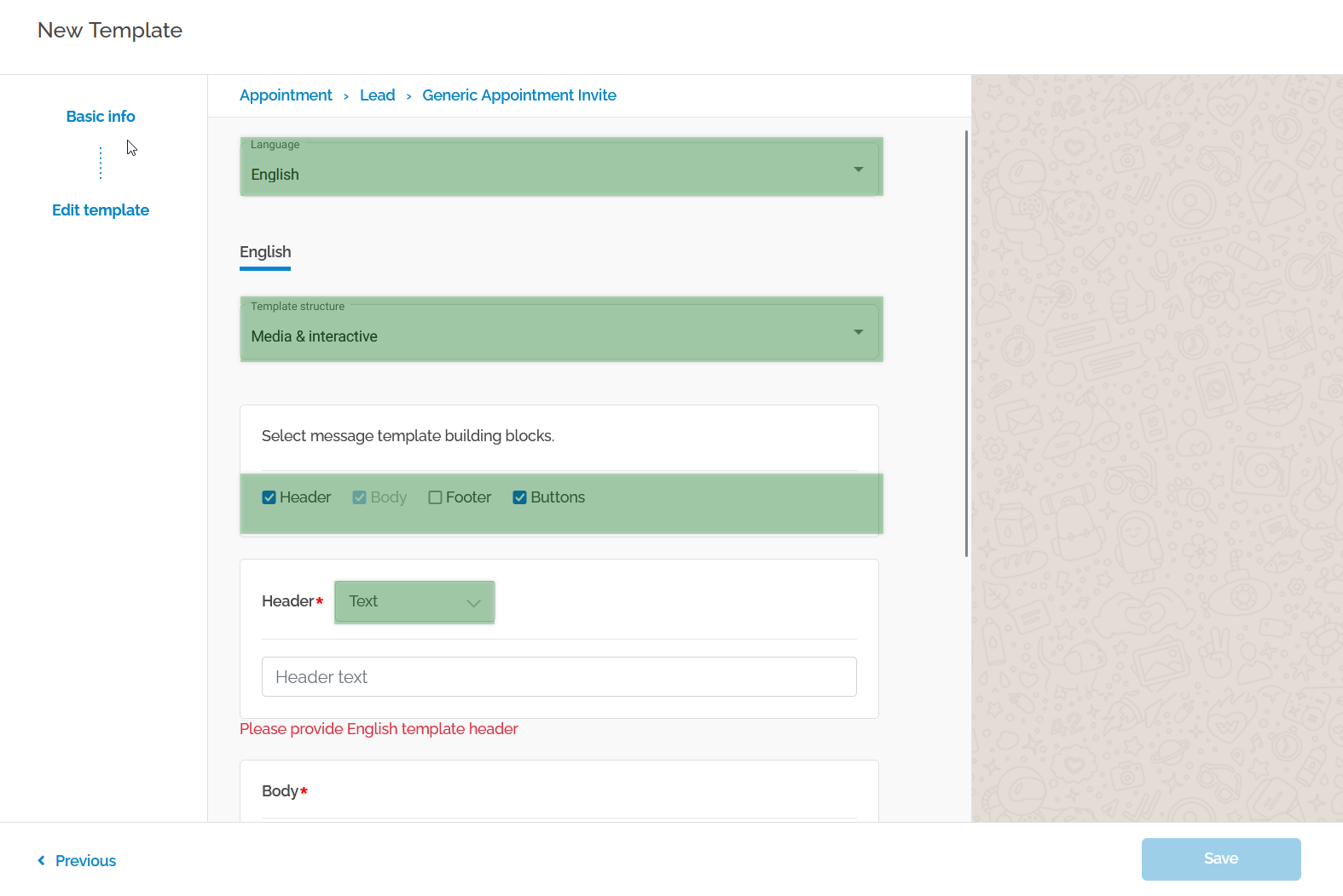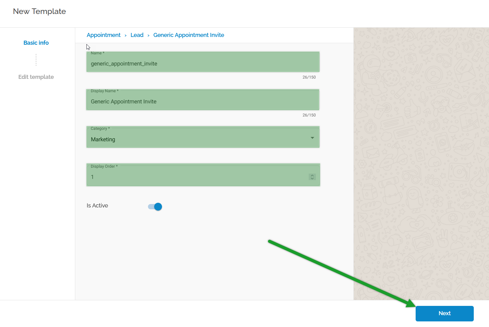 How to create a WhatsApp template (appointment invitation)?